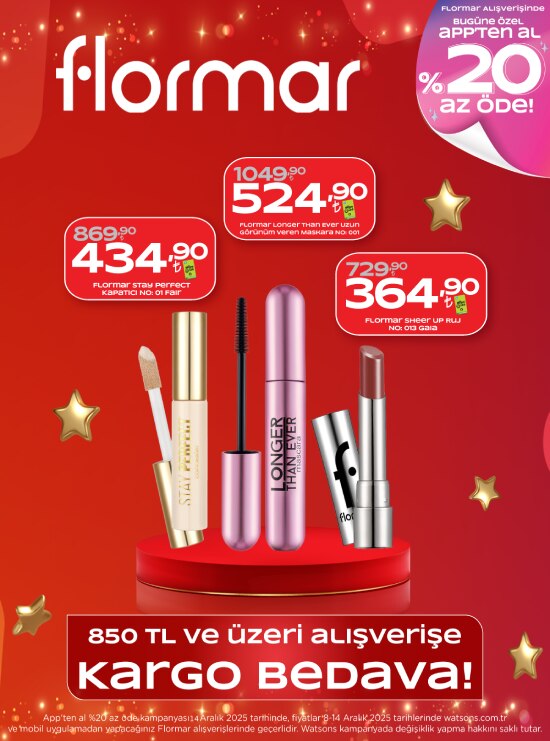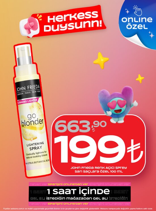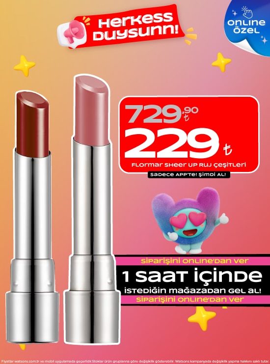 Watsons kozmetik ürünleri, tüm güzellik trendlerini sunarak dünyanızı daha da güzelleştiriyor. Her cilt tonuna uygun fondötenlerden pudralara, makyaj bazlarından kapatıcılara, farlardan paletlere, rimellerden göz kalemlerine, allıklardan rujlara uzanan ürün seçkisi yüzlerce renk seçeneği sunuyor. Kozmetik dünyası yeniliklerini bulabileceğiniz zengin içerikli ürün karması ile dilediğiniz makyaj malzemesine sahip olabilir ve farklı makyaj stillerini deneyebilirsiniz. İster favori markanız ister mükemmel eşleşmeyi bulmak için aradığınız ürünler olsun, Watsons’ta aradığınız her şeyi bulmanız mümkün. Büyülü Watsons makyaj malzemeleri ile yapabilecekleriniz sınırsız. Makyajın en önemli adımı olan mükemmel cildi elde etmenize yardımcı olacak makyaj bazı sepetinize ekleyeceğiniz ilk ürün. En doğru makyaj bazını belirleyerek kusursuz makyajı elde edebilirsiniz. Sırada fondöten var! Watsons, bu kategoride de sınırsız marka ve ton seçkisi sunuyor. Yapmanız gereken en doğru olanı bulmak. Sepetinize eklemeniz gereken bir diğer ürün de kapatıcı. Doğru seçilmiş bir kapatıcı ile yüzünüzdeki kusurları gizleyebilir ve dilediğiniz detayı da vurgulayabilirsiniz. Kontür paletleriyle de makyajınıza biraz renk eklemeyi unutmayın! Hem modunuza hem de kıyafetlerinize uygun trend oje markalarından dilediğinizi seçebilirsiniz.