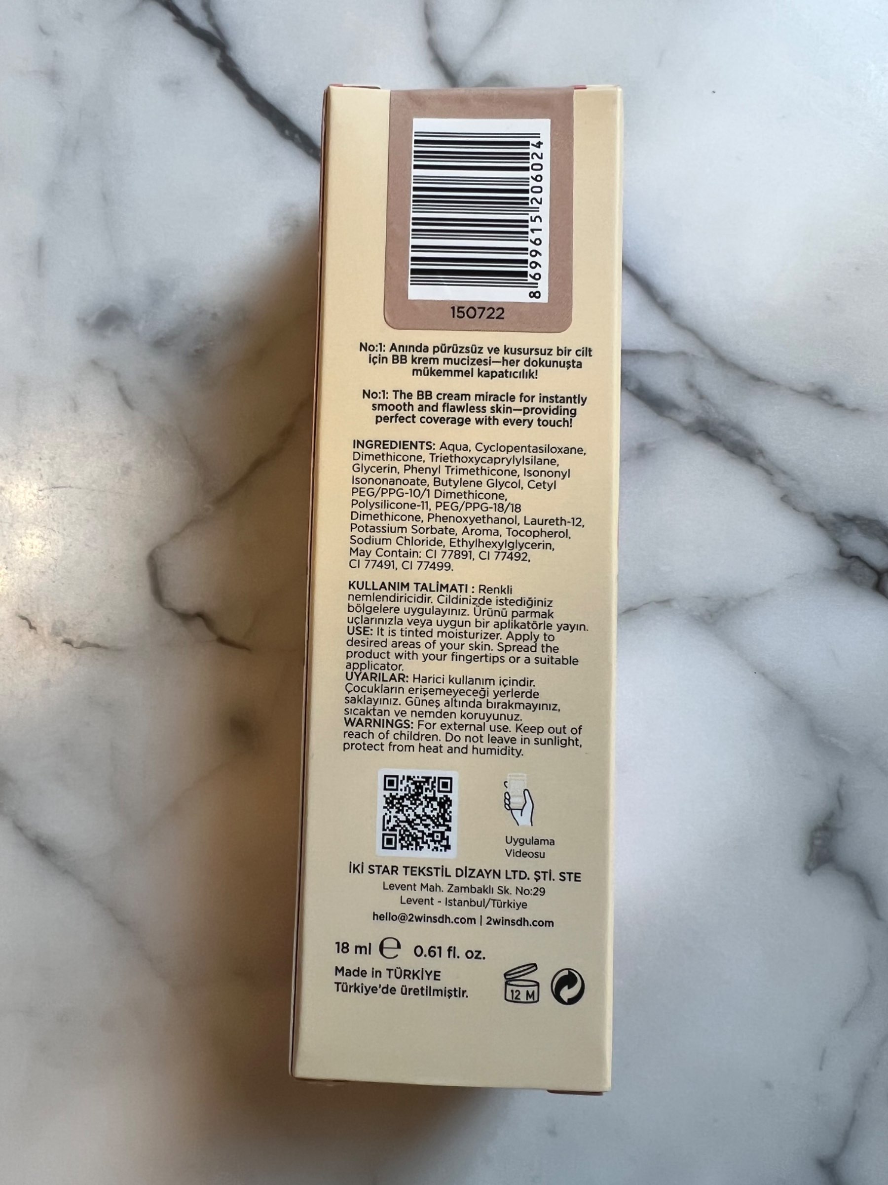 İçindekiler / Ingredients:Water (Aqua), Cyclopentasiloxane, Titanium Dioxide, Ethylhexyl Methoxycinnamate, Glycerin, Cetearyl Alcohol, PEG-100 Stearate, Glyceryl Stearate, Dimethicone, Isododecane, Phenoxyethanol, Stearic Acid, Aluminum Hydroxide, Triethoxycaprylylsilane, Methylparaben, Propylparaben, Tocopheryl Acetate, Parfum (Fragrance), Sodium Hyaluronate, Disodium EDTA, CI 77491, CI 77492, CI 77499.
