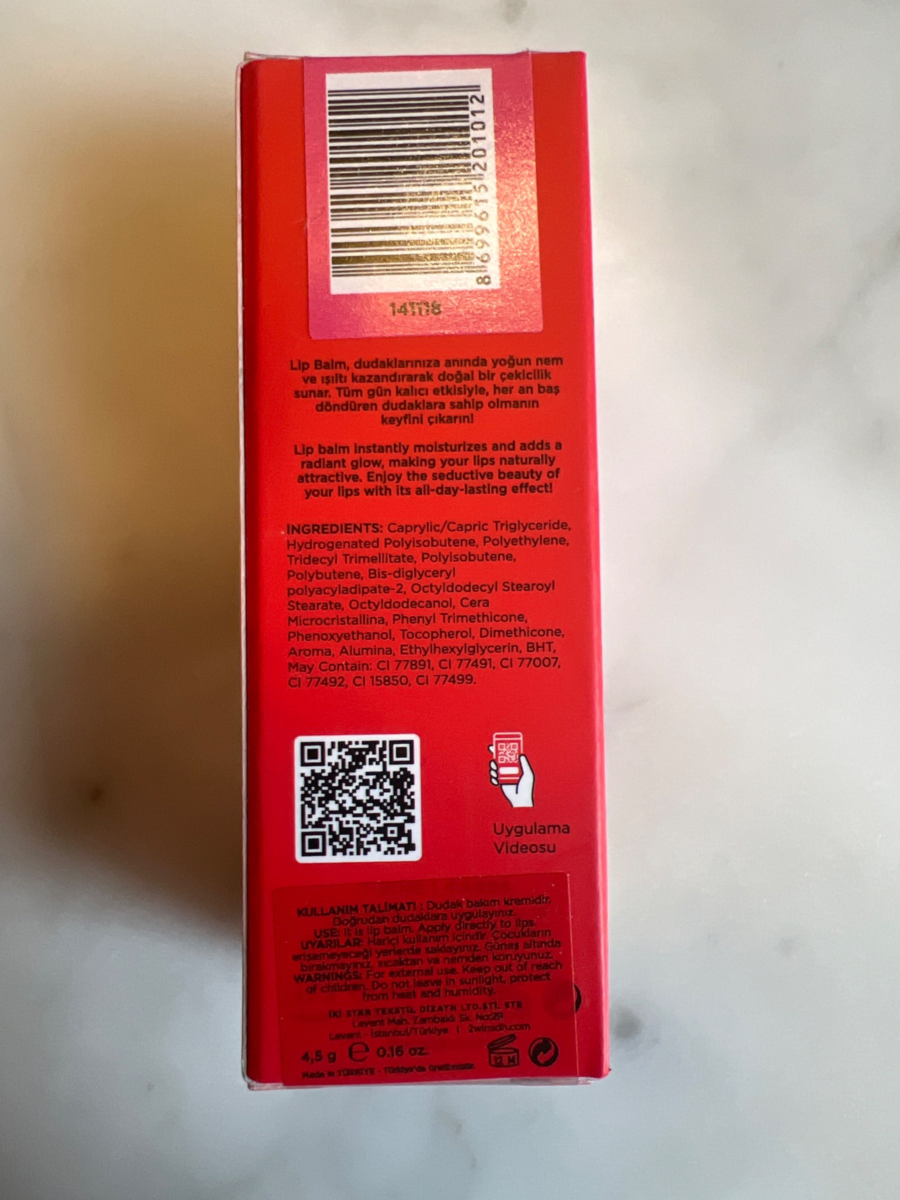 Caprylic/Capric Triglyceride, Hydrogenated Polyisobutene, Polyethylene, Tridecyl Trimellitate, Polyisobutene, Polybutene, Bis-diglyceryl polyacyladipate-2, Octyldodecyl Stearoyl Stearate, Octyldodecanol, Cera Microcristallina, Phenyl Trimethicone, Phenoxyethanol, Tocopherol, Dimethicone, Aroma, Alumina, Ethylhexylglycerin, BHT.May Contain:CI 77891, CI 77491, CI 77007, CI 77492, CI 15850, CI 77499.