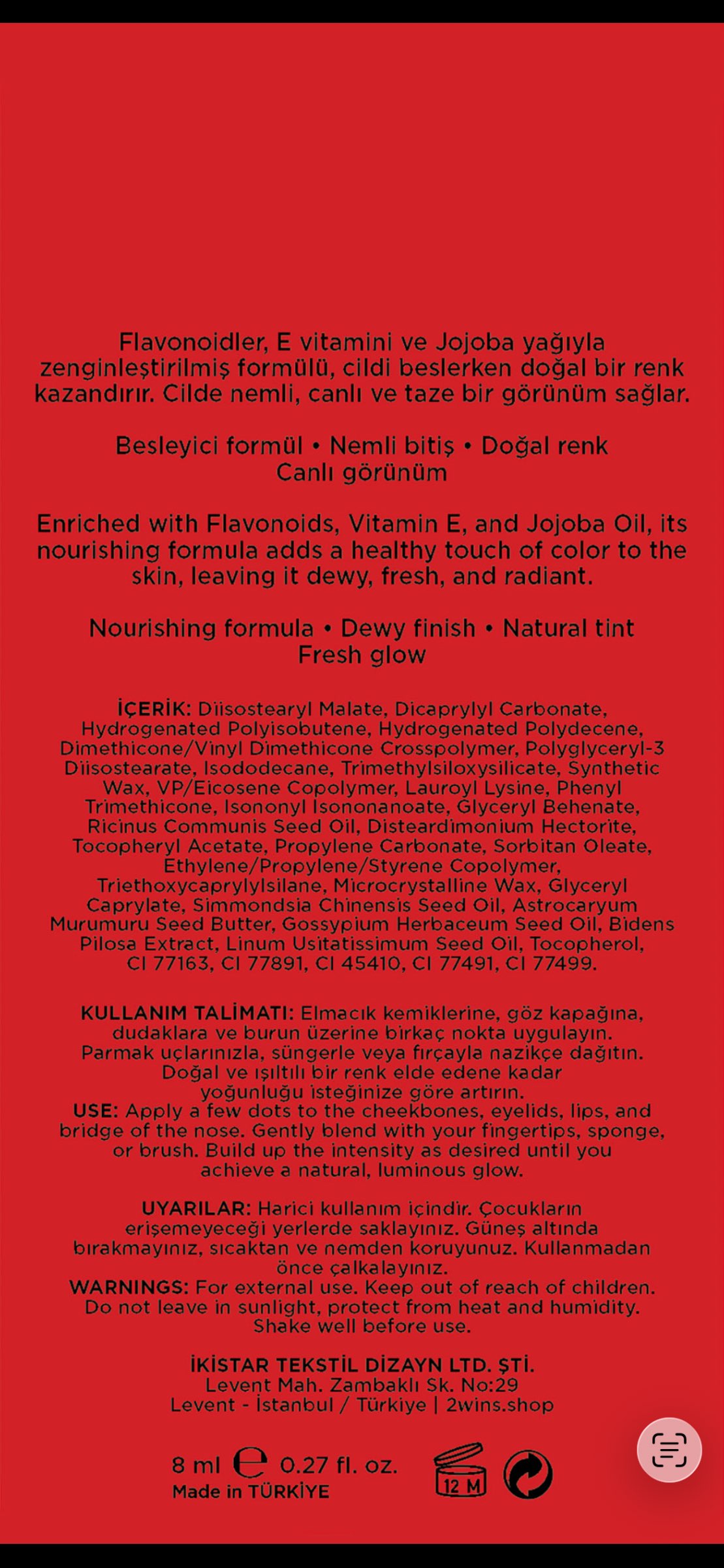 Harici kullanım içindir. Çocukların erişemeyeceği yerlerde saklayınız. Güneş altında bırakmayınız, sıcaktan ve nemden koruyunuz. Kullanmadan önce çalkalayınız.