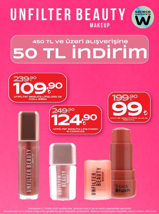 Watsons kozmetik ürünlerin yanı sıra cilt bakım ürünleriyle de geniş bir müşteri kitlesine hitap ediyor. Watsons’ta bulunan yüksek performanslı cilt bakım ürünleri ile en güzel halinizi ortaya çıkarabilirsiniz. Markanın sunduğu cilt bakımı ürünleri, hedefe yönelik bakımı sunan içerikleri ile cildinizin temizlenmesine, tedavi edilmesine, nemlendirilmesine ve korunmasına yardımcı oluyor. Hyaluronik asit içeren cilt bakım ürünleri ile cildinizi nemli tutabilirsiniz. İnce çizgiler ve kırışıklıklar size zor anlar mı yaşatıyor? Her yaş özelinde sunulan içeriklere göz atabilirsiniz. Yaşlanma karşıtı bakımı uygulamak için cilt bulmacanızı çözemiyor musunuz? Retinoid cilt bakım ürünleri eksik parçayı bulmanıza yardım edebilir. Kollajen üretimi söz konusu olduğunda cildinizle pazarlık yapmak istemiyor musunuz? C vitamini cilt bakım ürünleri ile cildinizi sıkı tutabilirsiniz. Watsons Türkiye, cilt bakımında güneş koruyucu içerikleri de büyük bir özenle sunuyor. Her cilt tipi özelinde içerikler ve derinlemesine koruma sunan güneş koruyucu kremler ile cildinizi yalnızca yaz aylarında değil her mevsim özelinde koruma altına alabilirsiniz. Cildin erken yaşlanmasına neden olan zararlı güneş ışınlarını cildinizden uzak tutarak cildinizin gençliğini ve ışıltısını uzun süre koruyabilirsiniz.