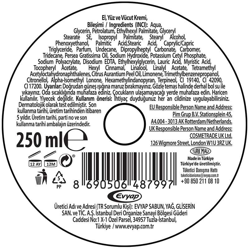 Evyap Sabun Yağ Gliserin San. ve Tic. A.Ş.İstanbul Deri Organize Sanayi Bölgesi Güderi Cad. No:1 X-1 Parsel 34957Tuzla/İstanbulinfo@evyap.com.tr