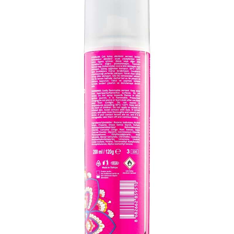 Feminine Aura Kuru Şampuan, saçlarınızda beyazlık bırakmaz ve kullanımı sonrasında saçlarınızda kalıcı bir tazelik hissi bırakır. Ayrıca, etkileyici ve sofistike kokusuyla, saçlarınızı adeta bir parfüm gibi sarar. Armut, Siyah Frenk Üzümü, Portakal Çiçeği, Süsen, Yasemin, Paçuli ve Vanilya gibi zarif notaların birleşimiyle, saçlarınıza özel bir parfüm etkisi yaratır.