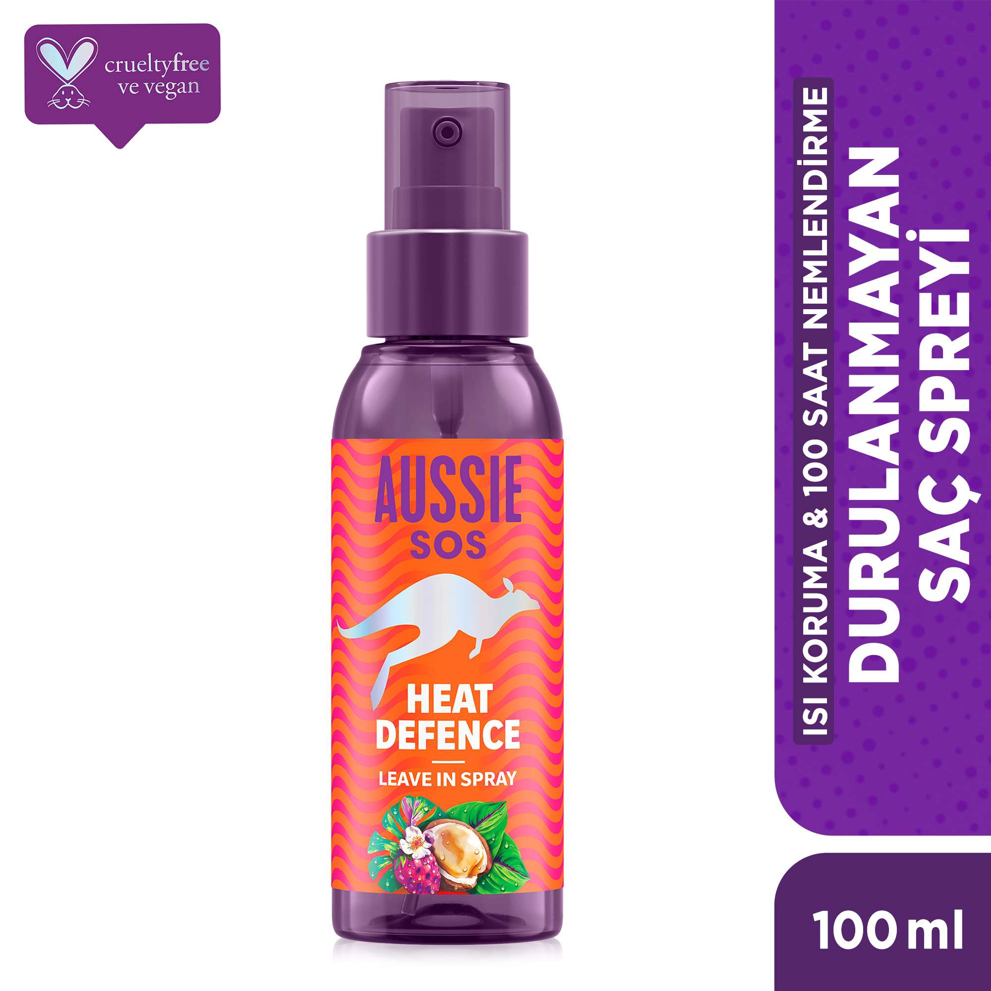 Isıya meydan oku! Aussie SOS Heat Defence durulanmayan saç spreyi, Australian superfoods zenginleştirilmiştir. Bu ısı koruma spreyi, saçınızı ısıdan korur, taramayı kolaylaştırır ve saçınızı 100 saat boyunca nemli tutar* (evet, doğru okudunuz!). Şekillendirmeden önce, havluyla kurutulmuş saçınızı köklerden uçlara doğru spreyleyin. Eşit dağıtmak için tarayın, durulamanıza gerek yok. Saçınızı şekillendirin. Sonra istediğinizi yapın! *yalnızca şampuan ile karşılaştırıldığında