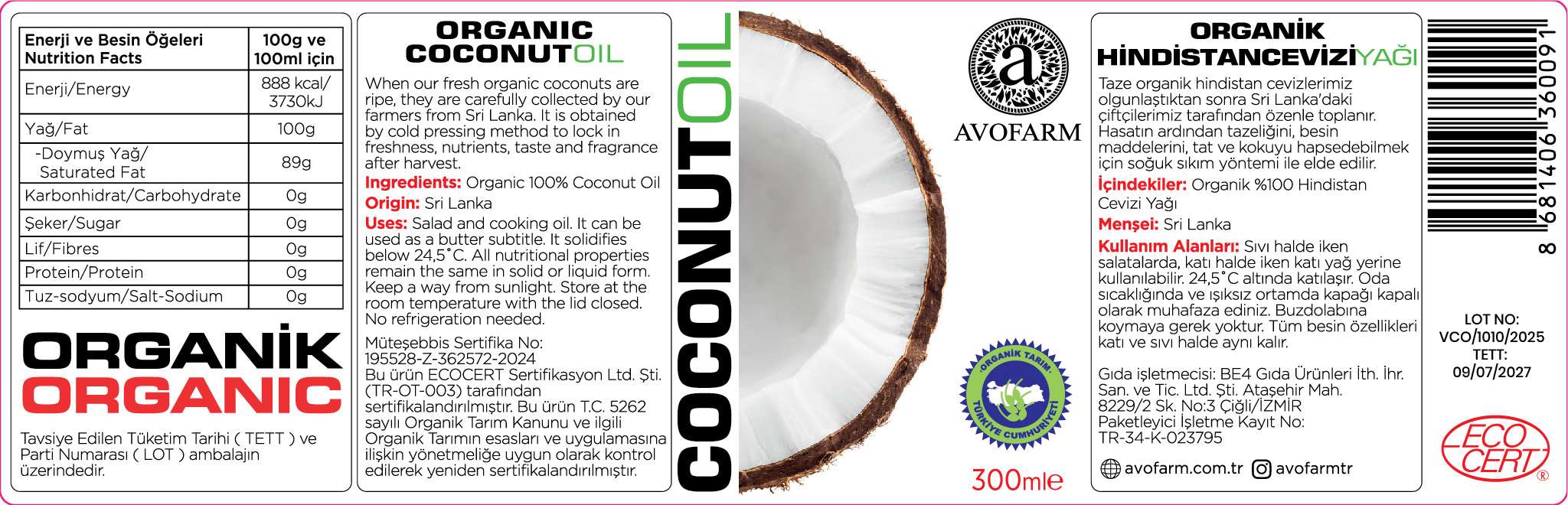 Değerlendirmeler Avofarm Organik Hindistan Cevizi Yağı 300 ml