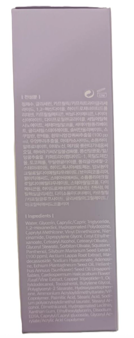 Water, Glycerin, Caprylic/Capric Triglyceride, 1,2-Hexanediol, Hydrogenated Polydecene,Caprylyl Methicone, Vinyl Dimethicone, Niacinamide, Dipropylene Glycol, Cetyl Ethylhexanoate, CetearylAlcohol, Cetearyl Olivate, Glyceryl Stearate, Sorbitan Olivate, Squalane, Panthenol, Silybum MarianumSeed Extract (100 ppm), Arctium Lappa Root Extract, Madecassoside, Sodium Hyaluronate, Adenosine,Echium Plantagineum Seed Oil, Helianthus Annuus (Sunflower) Seed Oil Unsaponifiables, CardiospermumHalicacabum Flower/Leaf/Vine Extract, Copper Tripeptide-1, Octyldodecanol, Tocopherol, Butylene Glycol,Polyglyceryl-2 Stearate, Hydroxyacetophenone, Ammonium Acryloyldimethyltaurate/VP Copolymer,Palmitic Acid, Stearic Acid, Sodium polyacryloyldimethyl taurate, Stearyl Alcohol, Dimethiconol,Hydrogenated Lecithin, Xanthan Gum, Ethylhexylglycerin, Disodium EDTA, Caprylyl/Capryl glucoside,Glyceryl Acrylate/Acrylic Acid Copolymer