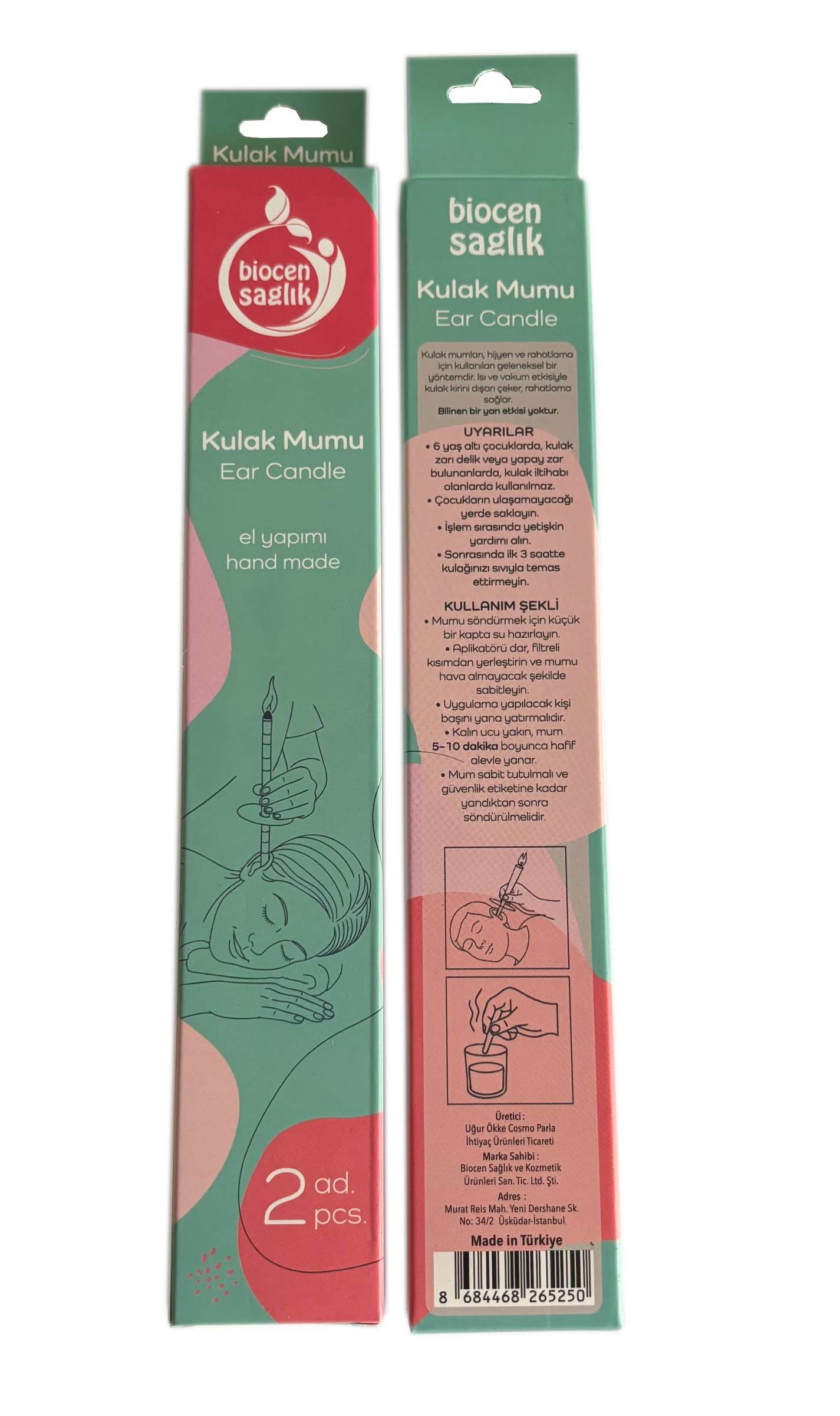 Kutulu, koruyucu şeffaf ambalajlı, 2 adet kulak mumu ve yuvarlak koruma bantı ile birlikte gönderilir.