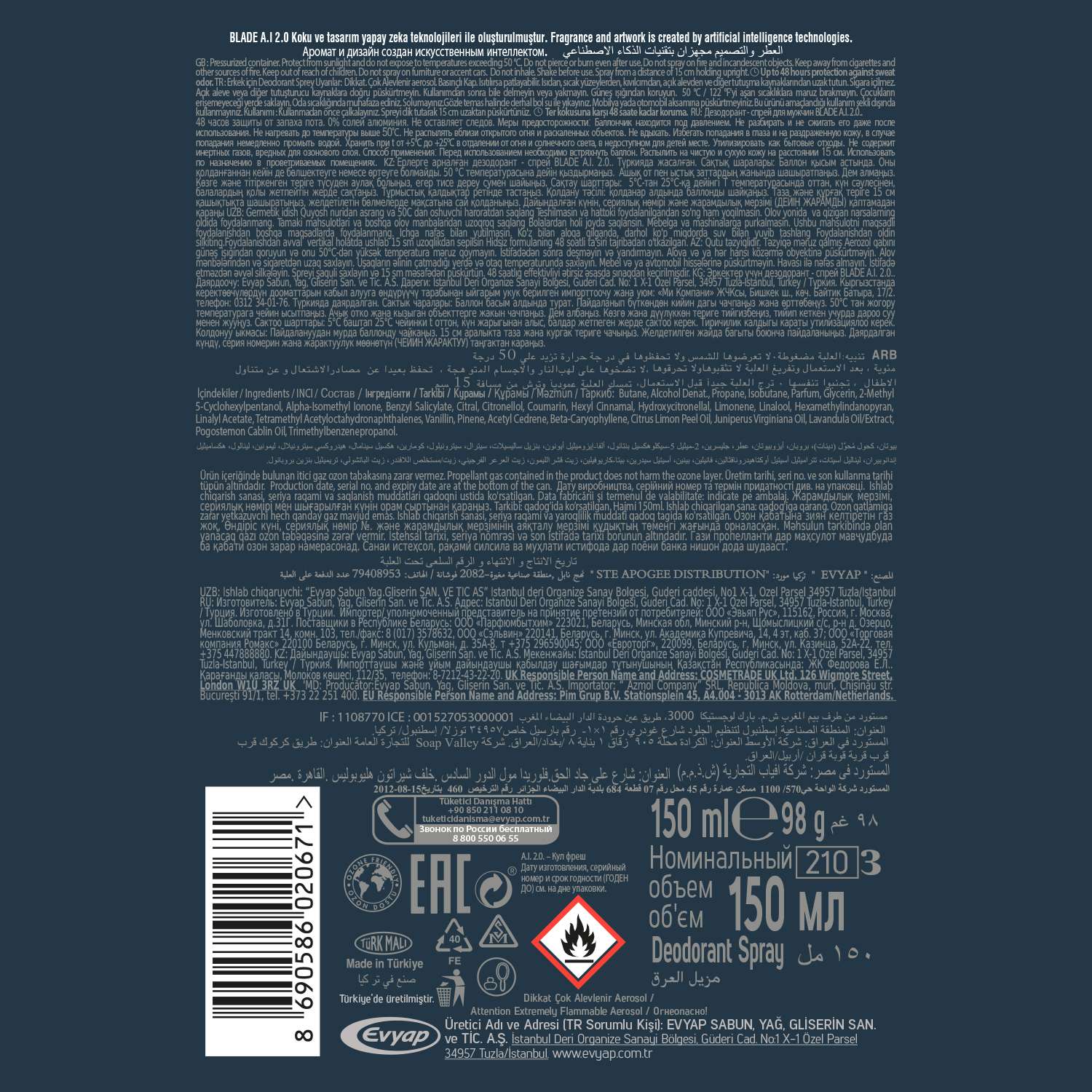 Butane, Alcohol Denat., Propane, Isobutane, Parfum, Glycerin, 2-Methyl 5-Cyclohexylpentanol, Alpha-Isomethyl Ionone, Benzyl Salicylate, Citral, Citronellol, Coumarin, Hexyl Cinnamal, Hydroxycitronellal, Limonene, Linalool, Hexamethylindanopyran, Linalyl Acetate, Tetramethyl Acetyloctahydronaphthalenes, Vanillin, Pinene, Acetyl Cedrene, Beta-Caryophyllene, Citrus Limon Peel Oil, Juniperus Virginiana Oil, Lavandula Oil/Extract, Pogostemon Cablin Oil, Trimethylbenzenepropanol.