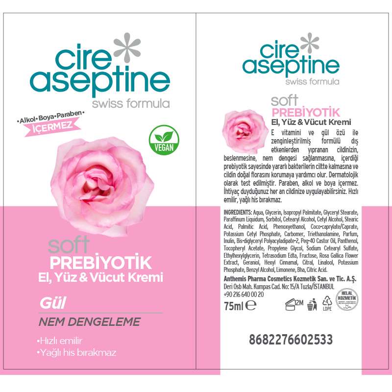 Cire Aseptine Soft Gül Özlü Nem Dengeleyici, Besleyici 75 ml Prebiyotikli Krem Ne işe yarar?