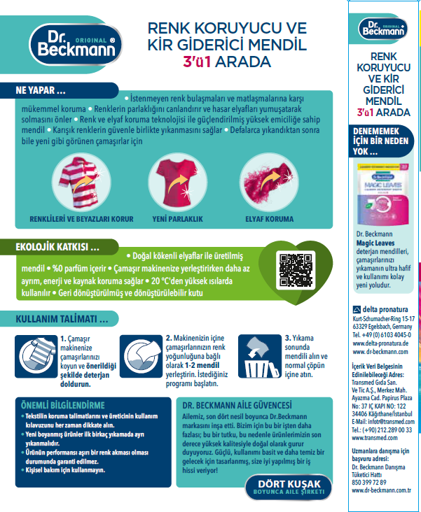 Dr. Beckmann Renk Koruyucu Mendil mikro gözenekli yapısı ile ortaya çıkan fazla boyaları kendi üzerinde toplayarak giysilerinizin üzerine geçmesini engeller.