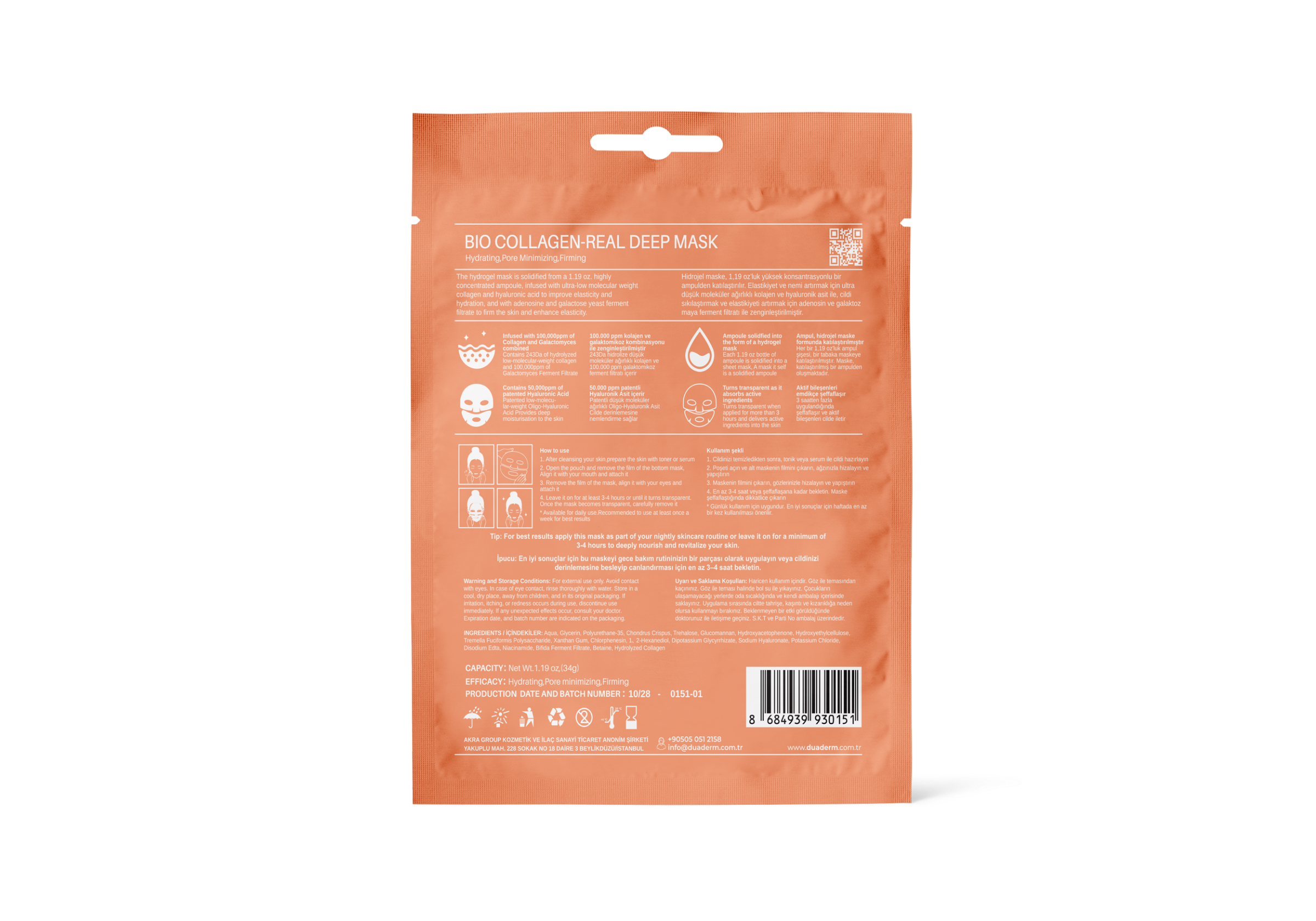 Duaderm Bio Collagen Real Deep Maske 1 Adet Yoğun Nem, Dolgunluk ve Yenilenmiş Bir Görünüm!