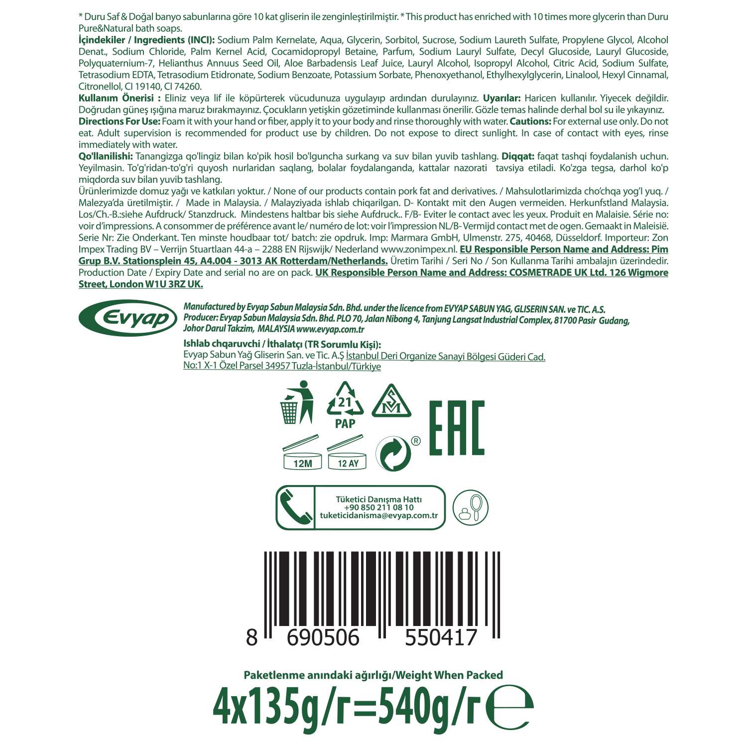 Manufactured by Evyap Sabun Malaysia Sdn. Bhd. under the licence from EVYAP SABUN YAG, GLISERIN SAN. ve TIC. A.S. Producer: Evyap Sabun Malaysia Sdn. Bhd. PLO 70, Jalan Nibong 4, Tanjung Langsat Industrial Complex, 81700 Pasir Gudang, Johor Darul Takzim, MALAYSIA www.evyap.com.tr