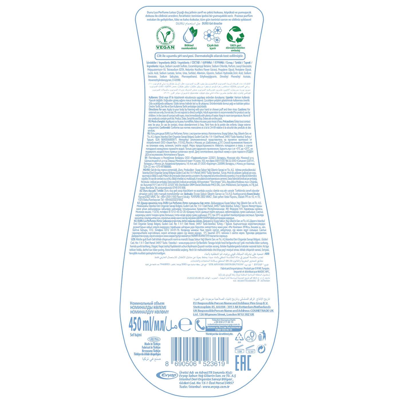 Üretici Adı ve Adresi (TR Sorumlu Kişi):Evyap Sabun Yağ Gliserin San. ve Tic. A.Şİstanbul Deri Organize Sanayi Bölgesi,Güderi Cad. No: 1X-1 Özel Parsel 34957Tuzla / İstanbul - www.evyap.com.tr