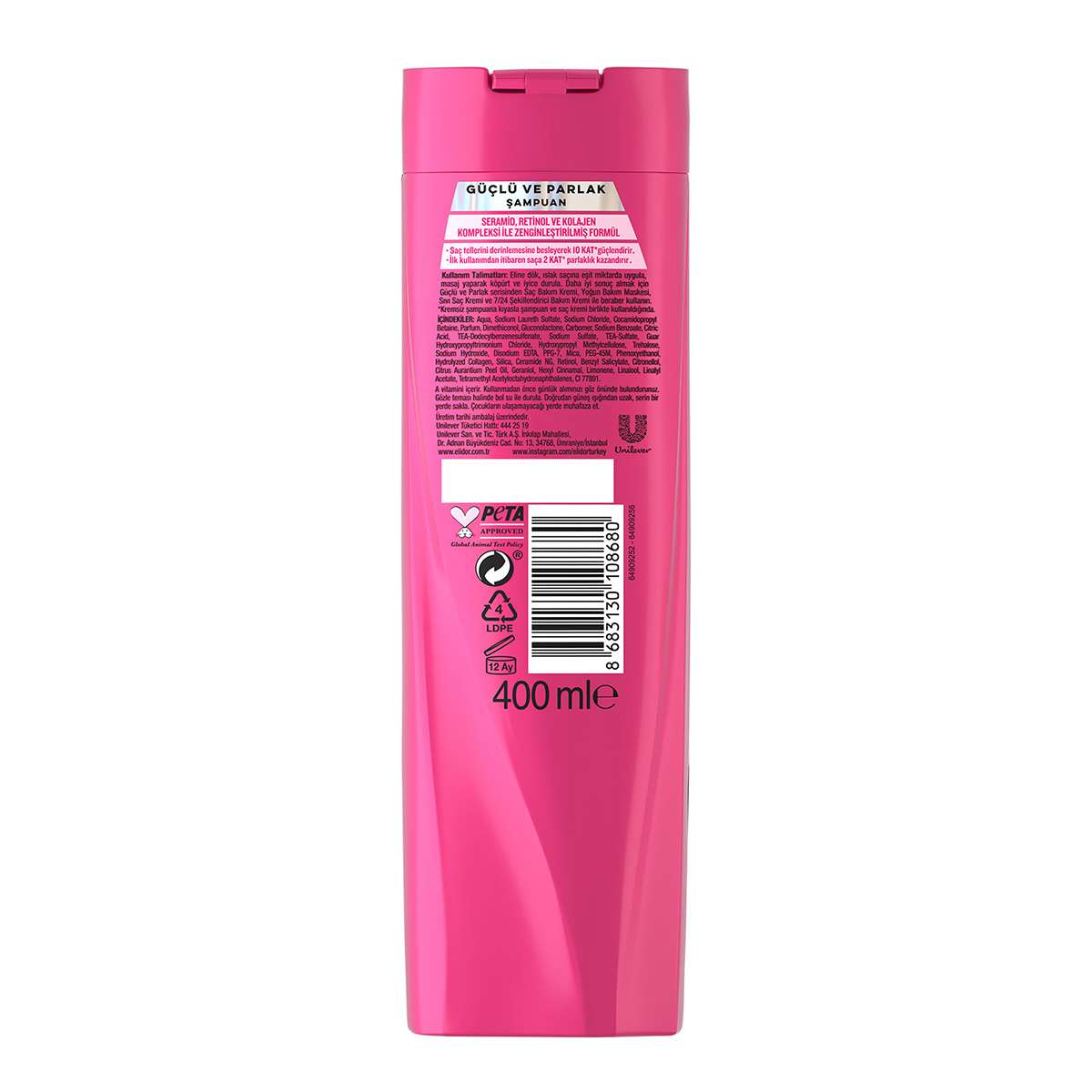 Elidor Güçlü ve Parlak Şampuan, Seramid-Parlaklık Kompleksi içerir. Seramid, Retinol ve Kolajen ile zenginleştirilmiş formülüyle saçlarını besler, güçlendirir ve parlaklık kazandırır. İlk kullanımdan itibaren saça 2 kat parlaklık kazandırır.