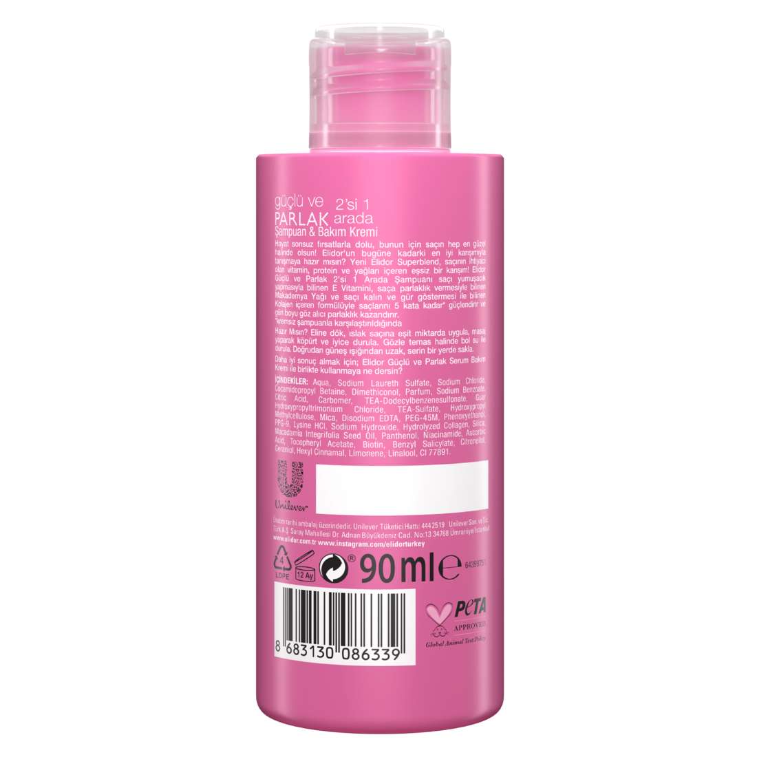 PETA Approved – VeganGeri dönüşüm simgesi ♻️LDPE simgesi12M simgesi (açıldıktan sonra 12 ay kullanım süresi)