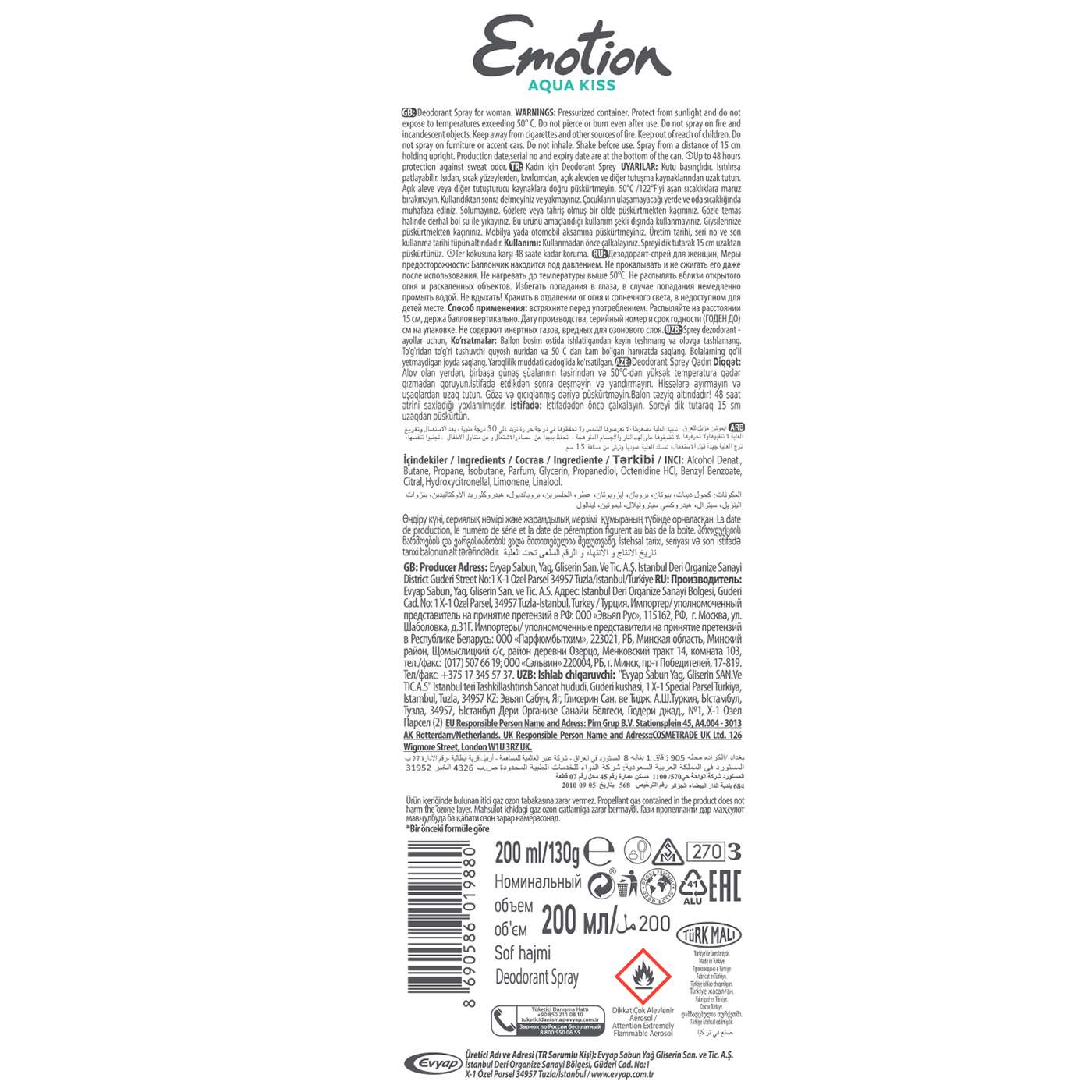 Aqua Kiss ile kendinizi oldukça ferah ve taze hissedeceksiniz! • Emotion – Aqua Kiss : Mandalin,greyfurt ve tropik meyvelerin kokusunu harmanlayan formülü ile gün boyu süren deodorant korumasını teninizde hissedersiniz.