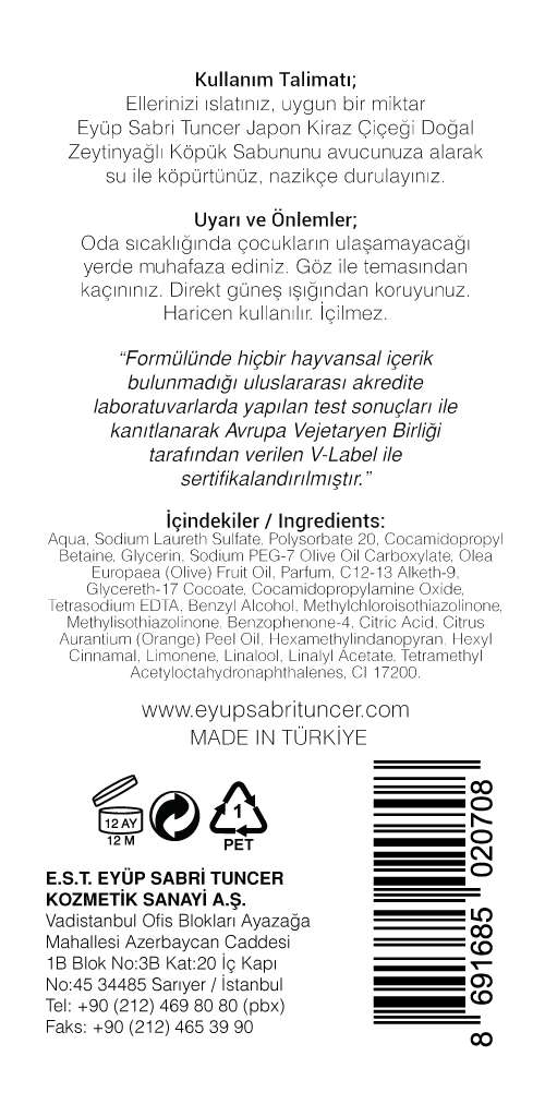 Değerlendirmeler Eyüp Sabri Tuncer Zeytinyağlı Köpük Sabun Japon Kirazı 500 ml