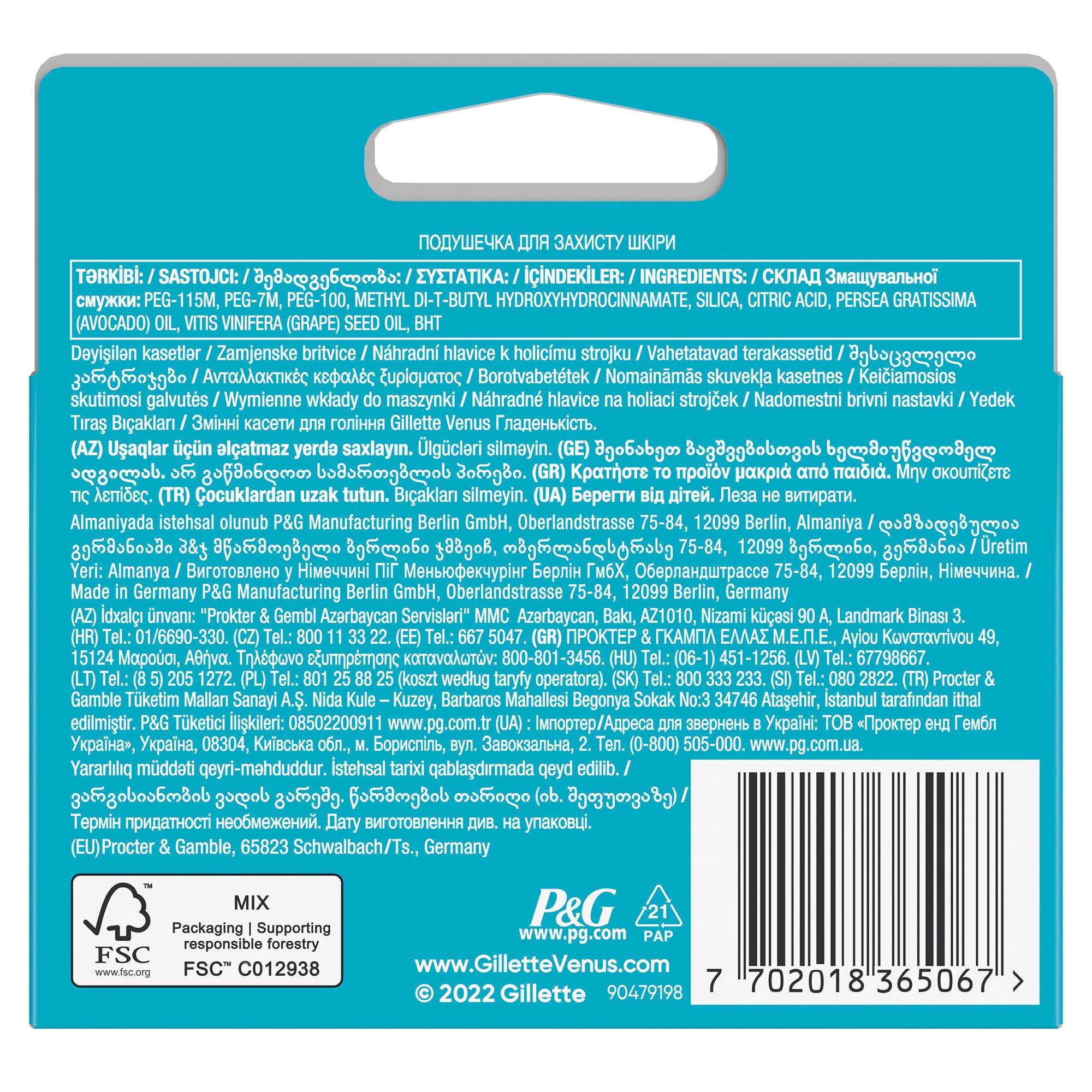 Venus kadın tıraş bıçakları, kadın vücudu göz önünde bulundurularak tasarlanmıştır. Venus Smooth tıraş makineleri, kadınlar için tasarlanan ilk 8 bıçaklı tıraş makinesidir. Yedek tıraş bıçaklarında cildi, güvenebileceğiniz sonuçlar için hızlı ve sorunsuz bir şekilde tıraş etmek üzere geren, koruyucu pedlerle çevrili, hatlara uyum sağlayan 8 bıçak yer alır.Solan mavi bir gösterge şeridi bulunur. Her Venus yedek bıçağı, her Venus tıraş makinesi gövdesine uyar.