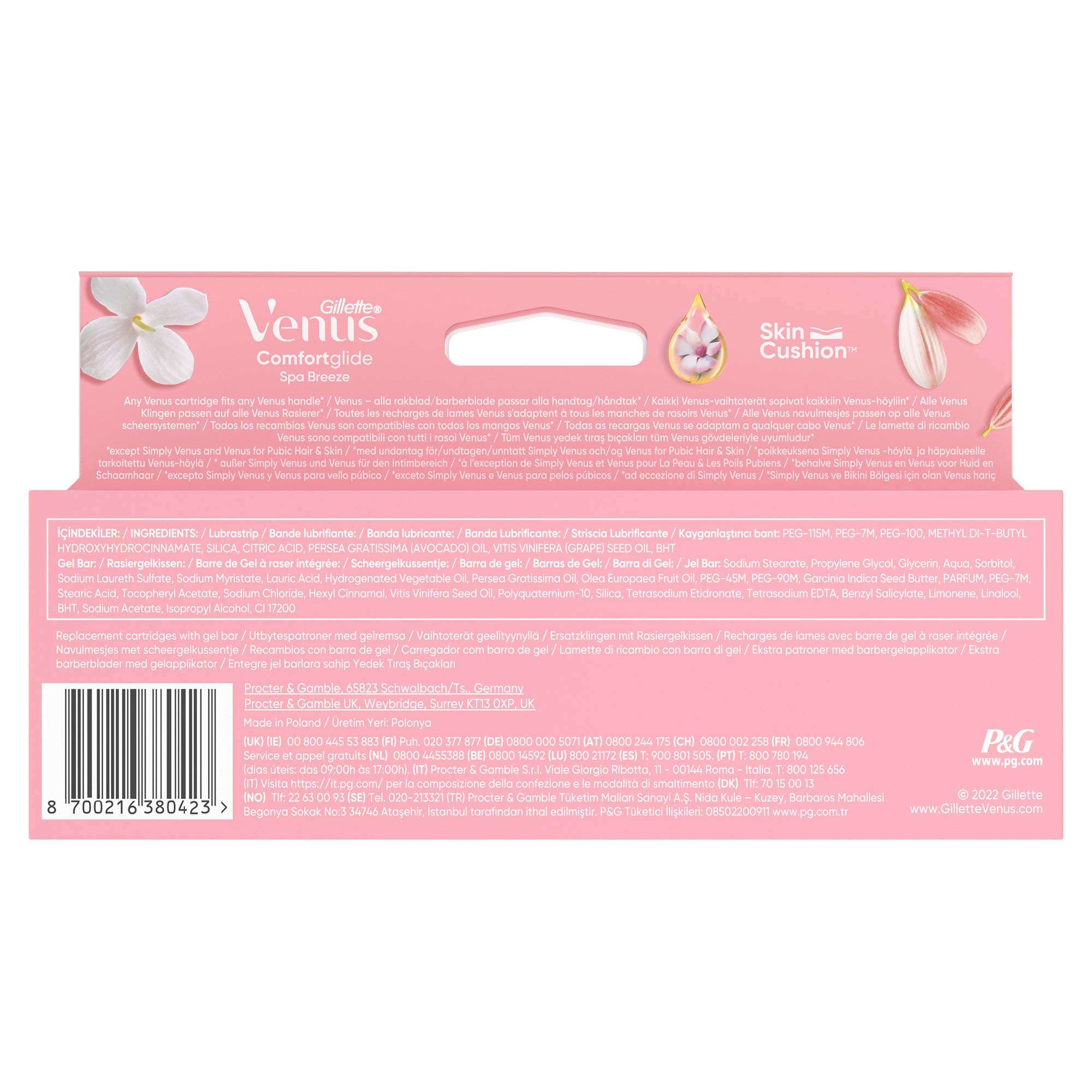 Kayganlaştırıcı Bant: PEG-115M; PEG-7M; PEG-100; Methyl Di-T-Butyl Hydroxyhydrocinnamate; Silica; Citric Acid; Persea Gratissima (Avocado) Oil; Vitis Vinifera (Grape) Seed Oil; BHT, Jel Bar: Sodium Stearate; Propylene Glycol; Glycerin; Aqua; Sorbitol; Sodium Laureth Sulfate; Sodium Myristate; Lauric Acid; Hydrogenated Vegetable Oil; Persea Gratissima Oil; Olea Europaea Fruit Oil; PEG-45M; PEG-90M; Garcinia Indica Seed Butter; Parfum; PEG-7M; Stearic Acid; Tocopheryl Acetate; Sodium Chloride; Hexyl Cinnamal; Vitis Vinifera Seed Oil; Polyquaternium-10; Silica; Tetrasodium Etidronate; Tetrasodium EDTA; Benzyl Salicylate; Limonene; Linalool; BHT; Sodium Acetate; Isopropyl Alcohol; CI 17200