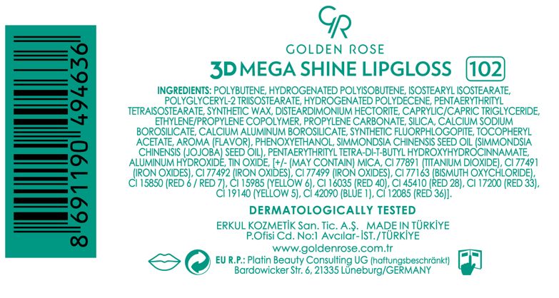 Golden Rose 3D Mega Shine Lip Gloss No:102 Etken Maddeleri Nelerdir?