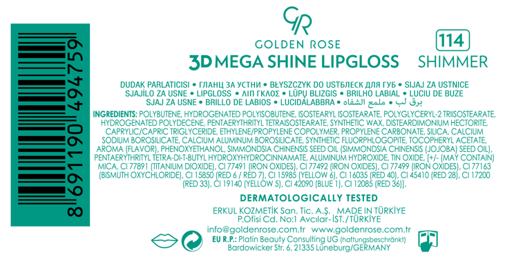 Golden Rose 3D Mega Shine Lip Gloss No:114 Etken Maddeleri nelerdir?