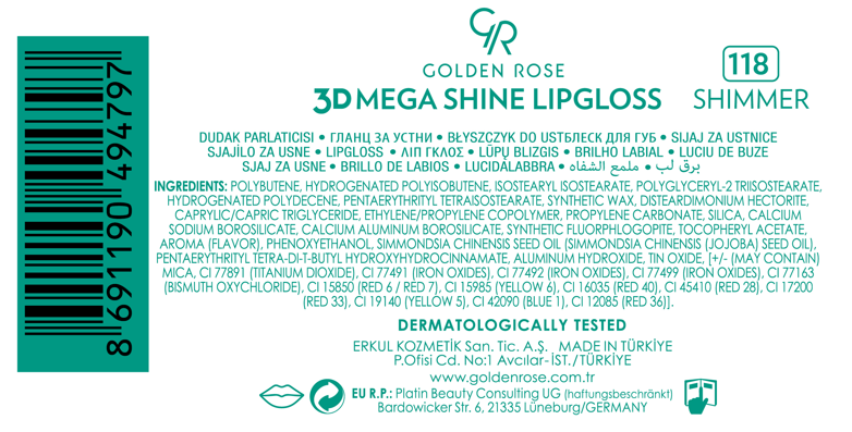 Golden Rose 3D Mega Shine Lip Gloss No:118 Etken Maddeleri nelerdir?
