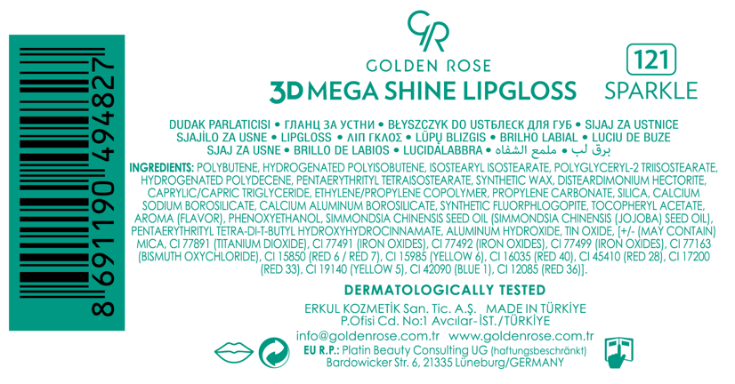 Golden Rose 3D Mega Shine Lip Gloss No:121 Etken Maddeleri nelerdir?
