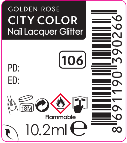 INGREDIENTS : ETHYL ACETATE, BUTYL ACETATE, NITROCELLULOSE, PHTHALIC ANHYDRIDE/TRIMELLITIC ANHYDRIDE/GLYCOLS COPOLYMER, POLYETHYLENE TEREPHTHALATE, ACETYL TRIBUTYL CITRATE, ALCOHOL, ISOPROPYL ALCOHOL, MICA, ACRYLATES COPOLYMER, SILICA, DIPROPYLENE GLYCOL DIBENZOATE, ISOBUTYLPHENOXY EPOXY RESIN, CALCIUM SODIUM BOROSILICATE, POLYBUTYLENE TEREPHTHALATE, SYNTHETIC FLUORPHLOGOPITE, POLYURETHANE-11, POLYURETHANE-33, ETHYLENE/VA COPOLYMER, STEARALKONIUM BENTONITE, ADIPIC ACID/NEOPENTYL GLYCOL/TRIMELLITIC ANHYDRIDE COPOLYMER, ALUMINUM HYDROXIDE, TRIETHOXYCAPRYLYLSILANE, DIACETONE ALCOHOL, PHOSPHORIC ACID, TIN OXIDE, [+/-(MAY CONTAIN) CI 77891 (TITANIUM DIOXIDE), CI 77491 (IRON OXIDES), CI 77492 (IRON OXIDES), CI 77499 (IRON OXIDES), CI 77000 (ALUMINUM POWDER), CI 15850 (RED 6 / RED 7), CI 15880 (RED 34), CI 19140 (YELLOW 5), CI 77820 (SILVER), CI 77510 (FERRIC FERROCYANIDE), CI 77007 (ULTRAMARINES), CI 77742 (MANGANESE VIOLET), CI 60725 (VIOLET 2), CI 77266 (BLACK 2) (NANO)].