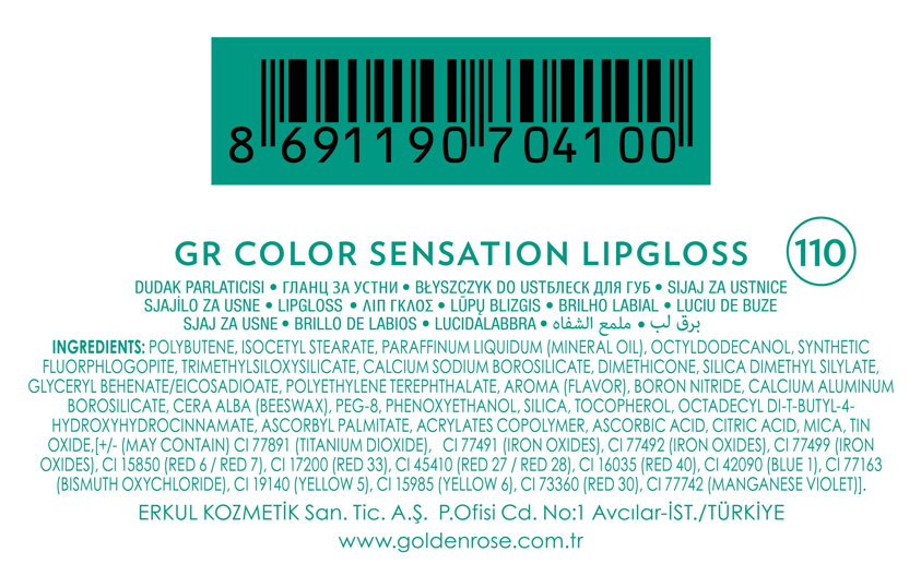 Golden Rose Color Sensation Lip Gloss No: 110 geliştirilmiş mükemmel formülü ile dudaklarınızda muhteşem parlak, ıslak bir görünüm yaratan bir dudak patlatıcısıdır.