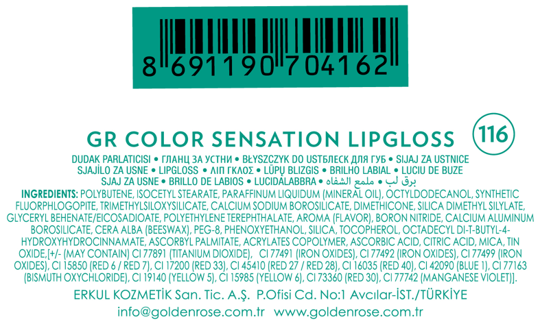 Golden Rose Color Sensation Lip Gloss No: 116 geliştirilmiş mükemmel formülü ile dudaklarınızda muhteşem parlak, ıslak bir görünüm yaratan bir dudak patlatıcısıdır.