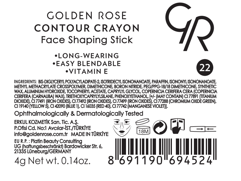 Golden Rose Contour Crayon Kalem No: 22 yüz hatlarınızı belirginleştirir, gölgelendirir ve elmacık kemiklerinizi vurgular.
