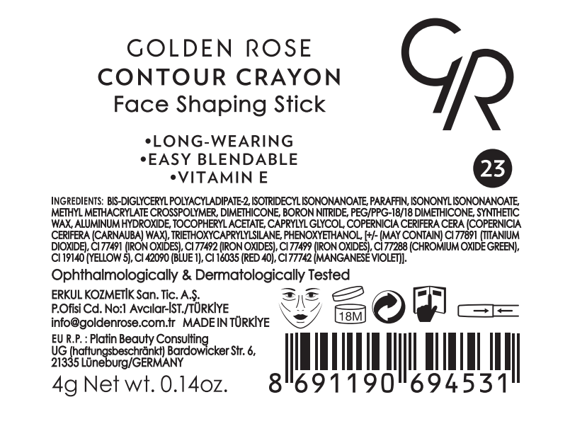 Golden Rose Contour Crayon Kalem No: 23 yüz hatlarınızı belirginleştirir, gölgelendirir ve elmacık kemiklerinizi vurgular.