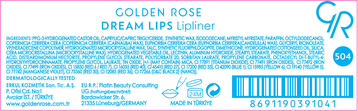 Golden Rose Dream Dudak Kalemi No: 504 Etken Maddeleri Nelerdir?