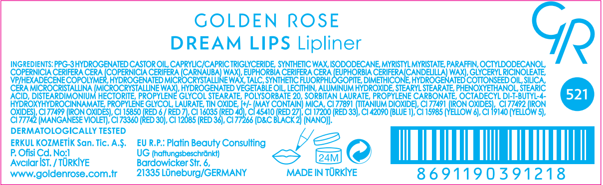Golden Rose Dream Dudak Kalemi No: 521 Etken Maddeleri Nelerdir?