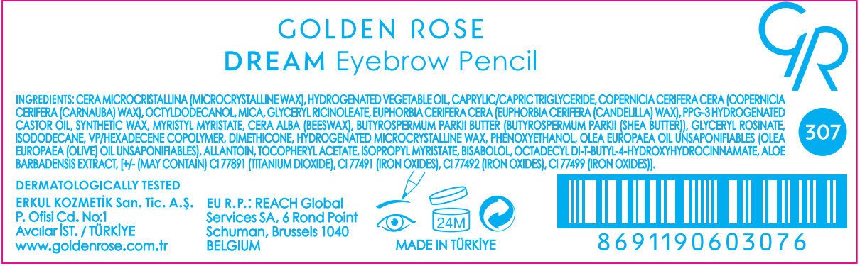 Golden Rose Dream Kaş Kalemi No: 307 kaşlarınızın doğallığını bozmadan belirginleştiren, şekillendirici fırçası ve kaşınıza uygun renk seçenekleri ile makyajınızı tamamlayan kaş kalemidir.