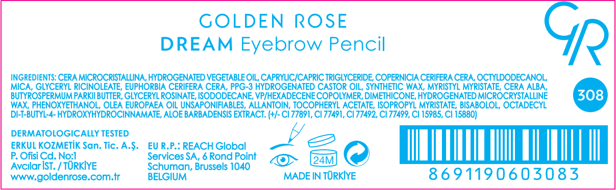 Golden Rose Dream Kaş Kalemi No: 308 kaşlarınızın doğallığını bozmadan belirginleştiren, şekillendirici fırçası ve kaşınıza uygun renk seçenekleri ile makyajınızı tamamlayan kaş kalemidir.