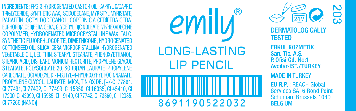 Emily Dudak Kalemi yoğun pigmentli yumuşak yapıda mat bitişli bir dudak kalemi çeşididir.