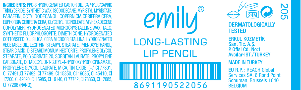 Emily Dudak Kalemi yoğun pigmentli yumuşak yapıda mat bitişli bir dudak kalemi çeşididir.