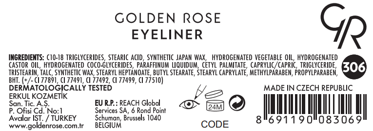 Golden Rose Göz Kalemi No: 306 özel formüllü, yüksek kaliteli göz kalemleridir.