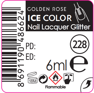 INGREDIENTS : ETHYL ACETATE, BUTYL ACETATE, NITROCELLULOSE, PHTHALIC ANHYDRIDE/TRIMELLITIC ANHYDRIDE/GLYCOLS COPOLYMER, POLYETHYLENE TEREPHTHALATE, ACETYL TRIBUTYL CITRATE, ALCOHOL, ISOPROPYL ALCOHOL, MICA, ACRYLATES COPOLYMER, SILICA, DIPROPYLENE GLYCOL DIBENZOATE, ISOBUTYLPHENOXY EPOXY RESIN, CALCIUM SODIUM BOROSILICATE, POLYBUTYLENE TEREPHTHALATE, SYNTHETIC FLUORPHLOGOPITE, POLYURETHANE-11, POLYURETHANE-33, ETHYLENE/VA COPOLYMER, STEARALKONIUM BENTONITE, ADIPIC ACID/NEOPENTYL GLYCOL/TRIMELLITIC ANHYDRIDE COPOLYMER, ALUMINUM HYDROXIDE, TRIETHOXYCAPRYLYLSILANE, DIACETONE ALCOHOL, PHOSPHORIC ACID, TIN OXIDE, [+/-(MAY CONTAIN) CI 77891 (TITANIUM DIOXIDE), CI 77491 (IRON OXIDES), CI 77492 (IRON OXIDES), CI 77499 (IRON OXIDES), CI 77000 (ALUMINUM POWDER), CI 15850 (RED 6 / RED 7), CI 15880 (RED 34), CI 19140 (YELLOW 5), CI 77820 (SILVER), CI 77510 (FERRIC FERROCYANIDE), CI 77007 (ULTRAMARINES), CI 77742 (MANGANESE VIOLET), CI 60725 (VIOLET 2), CI 77266 (BLACK 2) (NANO)].