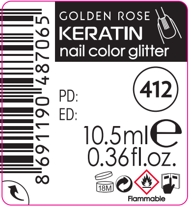 Golden Rose Keratin Glitter Oje No: 412 keratin ile zenginleştirilmiş parlak ve uzun süre kalıcı formüle sahip oje serisidir.