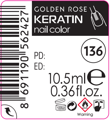 Golden Rose Keratin Oje No: 136 Keratin ile zenginleştirilmiş parlak ve uzun süre kalıcı formüle sahip oje serisidir.