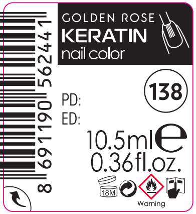 Golden Rose Keratin Oje No: 138 Keratin ile zenginleştirilmiş parlak ve uzun süre kalıcı formüle sahip oje serisidir.