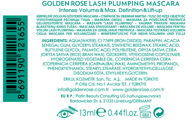 Golden Rose Lash Plumping Maskara ekstra hacim kazandıran yepyeni formülü ve ekstra büyük fiber fırçası ile kirpiklerinizi mükemmel bir şekilde kaplar, daha dolgun, daha belirgin ve kıvrık bir görünüm kazandırır.