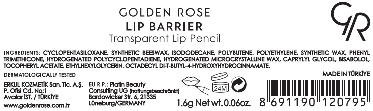 Golden Rose Lip Barrier Transparent Dudak Kalemi dudakları öne çıkarıp belirginleştiren ve daha dolgun gösteren, çok hafif pembemsi ten rengi ile hem dudaklar için hem de göz içine uygulanarak gözün daha parlak görünmesi sağlayan bir kalemdir.