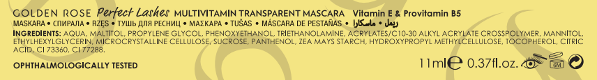 Golden Rose Perfect Lashes Multi Vitamin Maskara kirpiklere doğal bir parlaklık kazandır, içeriğindeki minik vitamin topları E ve Provitamin B5 ile kirpikleri besler, korur, bakım yapar.