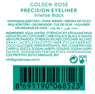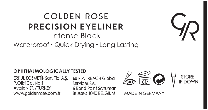 Golden Rose Precision Liner gün boyu kalıcı ve suya dayanıklı formülü ile mükemmel eyeliner görünümü.