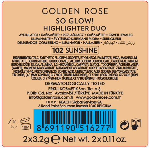 Golden Rose So Glow Aydınlatıcı Far Paleti No: 102 gün boyu kusursuz ve ışıltılı bir görünüme sahip olmanızı sağlayan, yüzünüzde öne çıkarmak istediğiniz bölgelere parlaklık ve canlılık kazandıran bir aydınlatıcı ikili far paletidir.