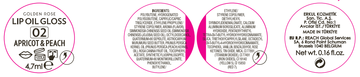 Golden Rose Sweet Kiss Lip Oil Gloss No: 02 dudak parlatıcısının parlak bitişi ve dudak yağının besleyici, nemlendirici etkisinin birleşimini bir arada sunan dudak parlatıcı yağdır.
