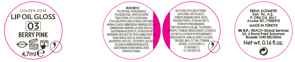 Golden Rose Sweet Kiss Lip Oil Gloss No: 03 dudak parlatıcısının parlak bitişi ve dudak yağının besleyici, nemlendirici etkisinin birleşimini bir arada sunan dudak parlatıcı yağdır.